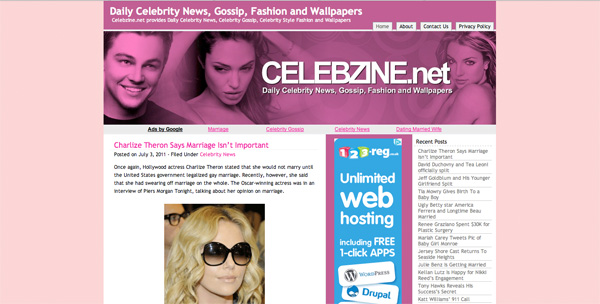 - The navigation for the site is quite unclear. I wasn’t sure if the primary navigation was the top-right (home, about etc…) or the categories menu in the sidebar ‘celebrity news, music news etc…’. It doesn’t seem to make sense to have the main content categories outside of the top menu, as these are vital for browsing content.