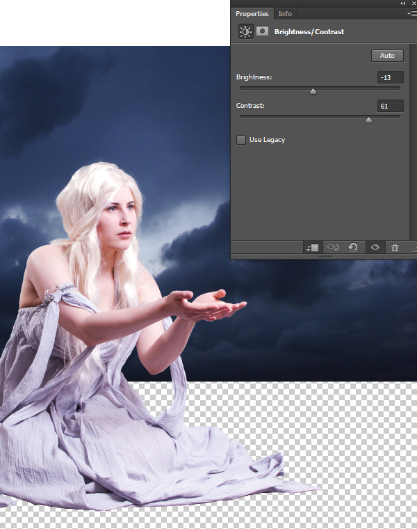 3) Using the Brightness/Contrast adjustment layer set the brightness to -13 and Contrast to 61.