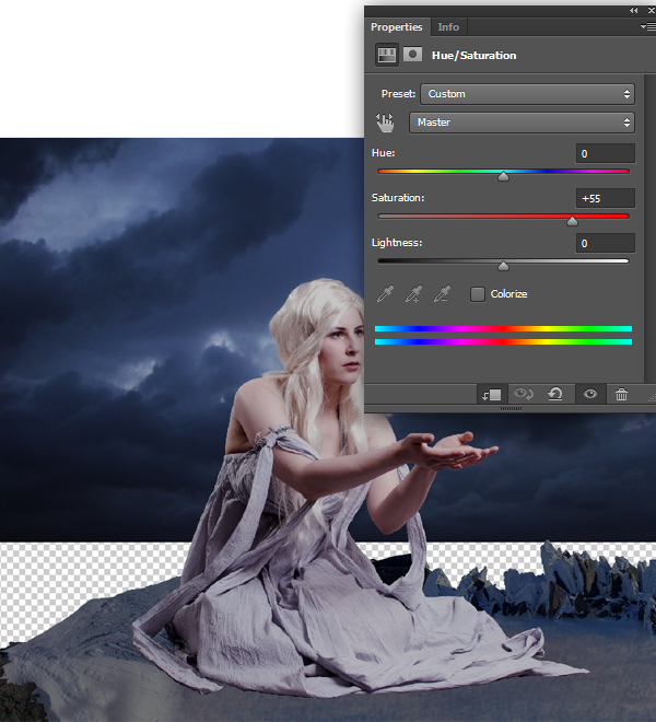 4) De-Saturate the princess layer to -31 using the Hue/Saturation Adjustment layer.